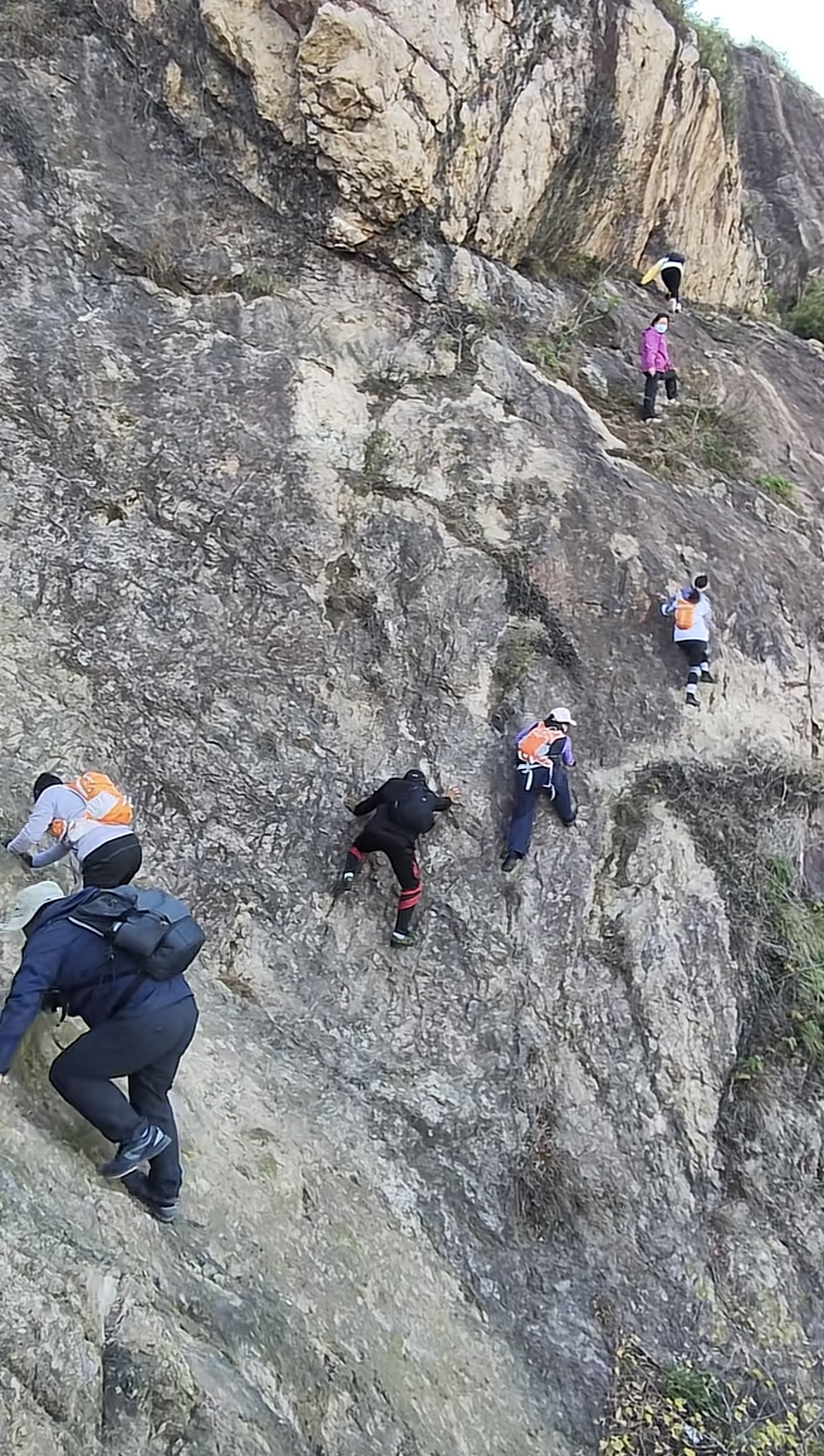 社交平台上,网友分享攀爬圌山野道(视频截图)