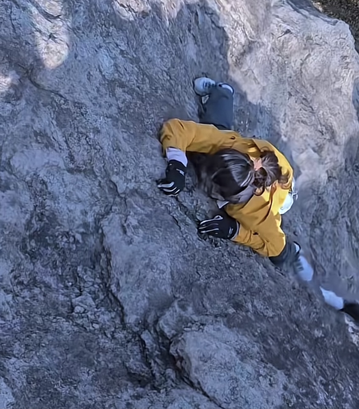 记者看到,该视频配文中显示的位置为圌山景区的徒步野线——鹰嘴崖鲫鱼背。视频中女子身穿黄色冲锋衣,戴着黑色手套,未佩戴头盔、安全绳,无任何保护措施。她爬至一处岩壁,焦灼地站立,身后还跟着继续攀爬的游客。上方两名疑似领队的男子在指导她踩点,说道“找个点”“下面的人给她指一下”,女子回道“我就是脚踩不到”,话音未落,女子脚滑,惊呼着坠滑下崖壁。
