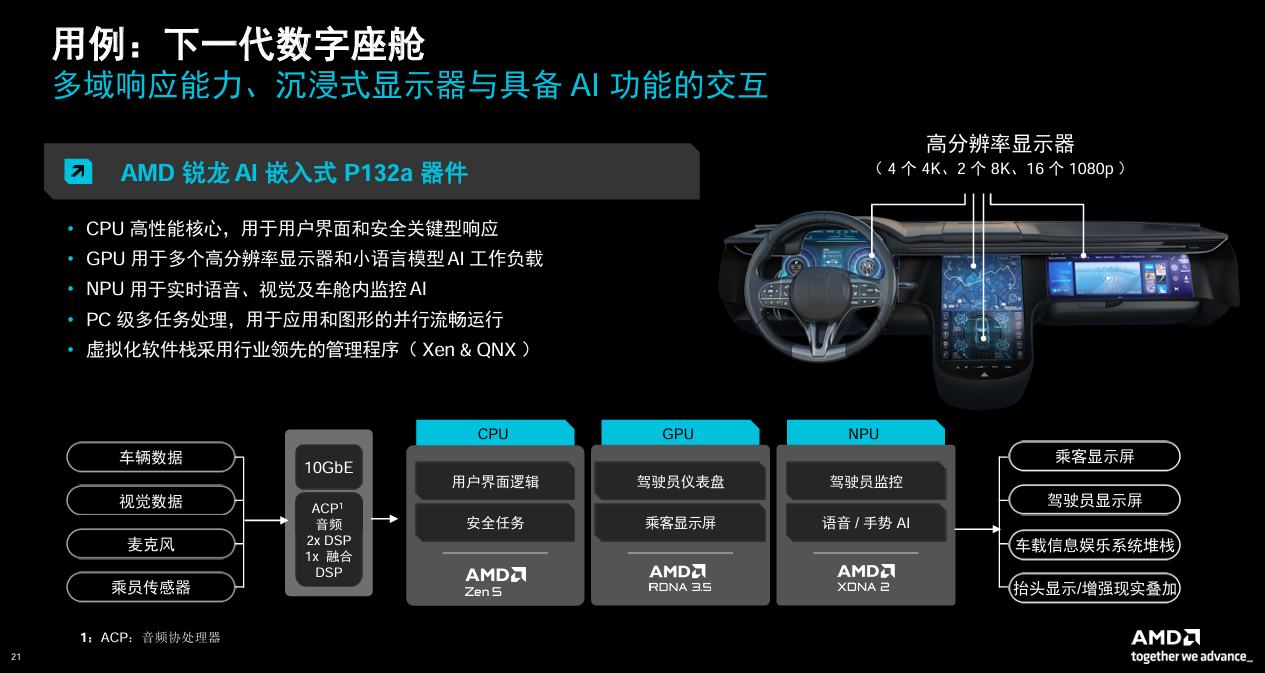 这一策略背后,反映出AMD对行业趋势的判断:在完全自动驾驶实现之前,车内人机交互与智能体验的复杂度将率先迎来爆发,并成为整车差异化竞争的关键。通过在此领域建立优势,AMD也为未来可能的功能融合提前布局。